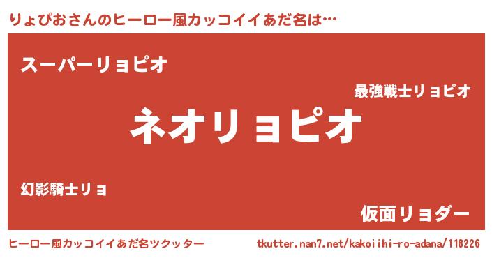 | 男性向けラノベタイトル風あだ名 | 『りょぴおという概念が存在しない退屈な世界 』 |