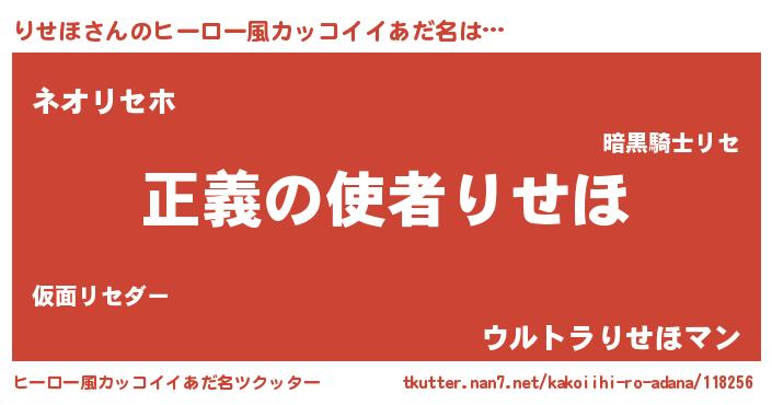 | 男性向けラノベタイトル風あだ名 | 『おまえをオタクにしてやるから、俺をりせほにしてくれ! 』 |