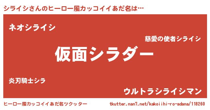 | 女子向けラノベタイトル風あだ名 | 『乙女ゲームの破滅フラグしかない悪役シライシに転生してしまった…』 |