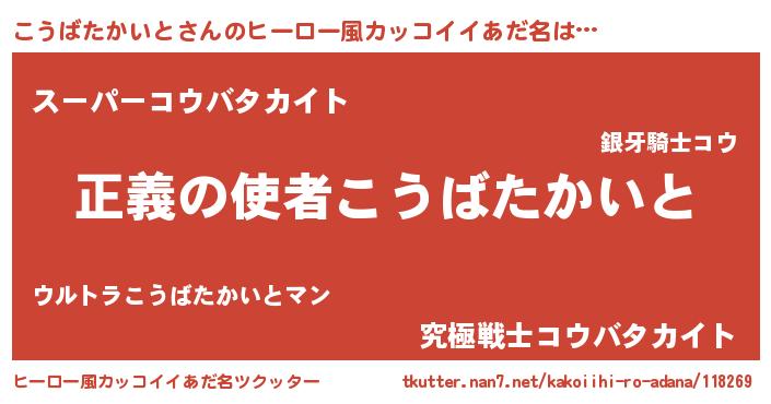 | 男性向けラノベタイトル風あだ名 | 『おまえをオタクにしてやるから、俺をこうばたかいとにしてくれ! 』 |