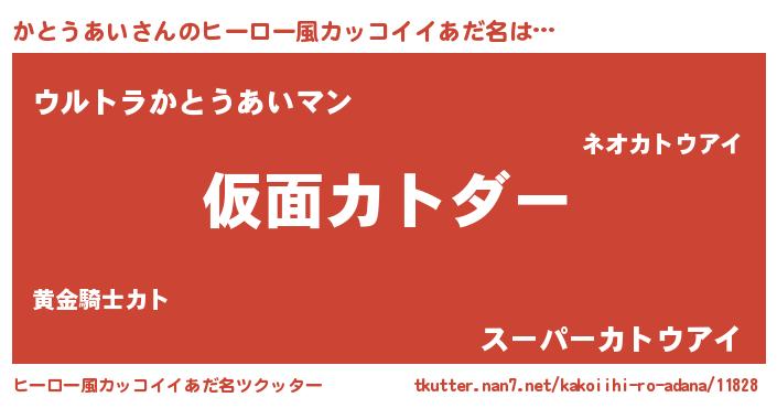 | 恥ずかしいあだ名 | 『かとっちょ』『プリティーかとうあい』 |