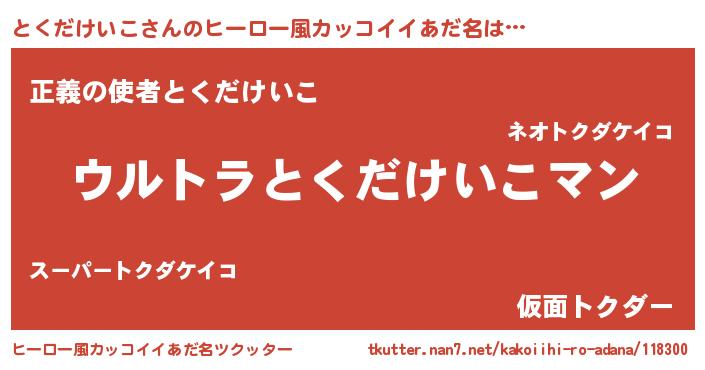 | 男性向けラノベタイトル風あだ名 | 『緋弾のトクダケイコ』 |