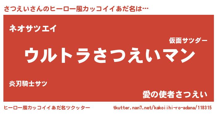 | 意味不明あだ名 | 『さつえいフォーエバー』 |