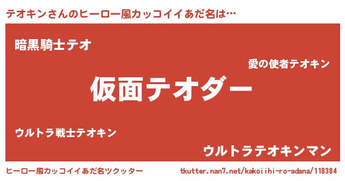 | 男性向けラノベタイトル風あだ名 | 『テオキンに滅ぼされるだけの簡単なお仕事です』 |