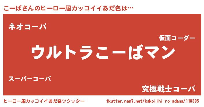 | 男性向けラノベタイトル風あだ名 | 『うちの娘の為ならば、俺はもしかしたらこーばも倒せるかもしれない。』 |