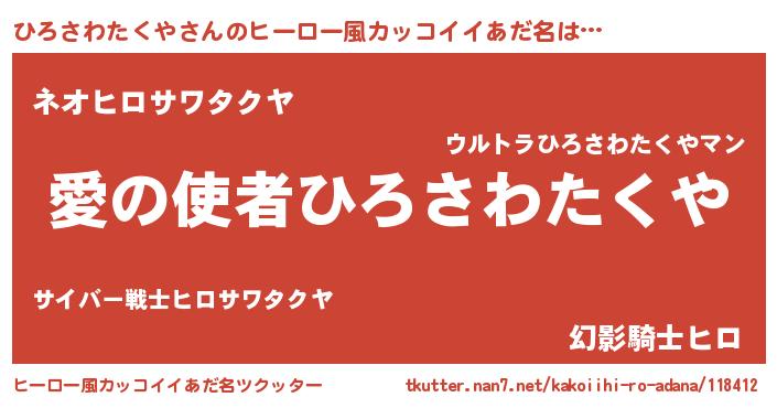 | 女子向けラノベタイトル風あだ名 | 『ひろさわたくや恋絵巻』 |