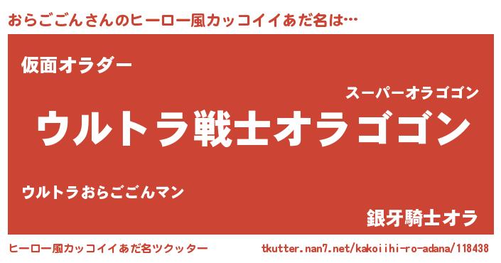 | 意味不明あだ名 | 『自称おらごごん』『ペロリンおらごごん』 |