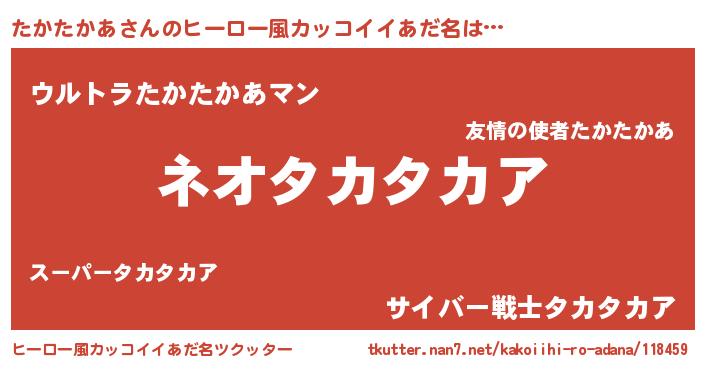 | 男性向けラノベタイトル風あだ名 | 『たかたかあという概念が存在しない退屈な世界 』 |