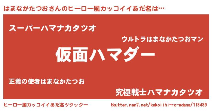 | 男性向けラノベタイトル風あだ名 | 『この素晴らしい世界にはまなかたつおを!』 |