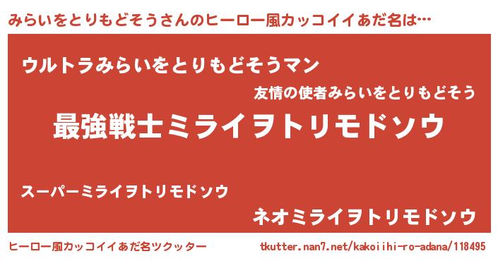 | 意味不明あだ名 | 『自称みらいをとりもどそう』 |