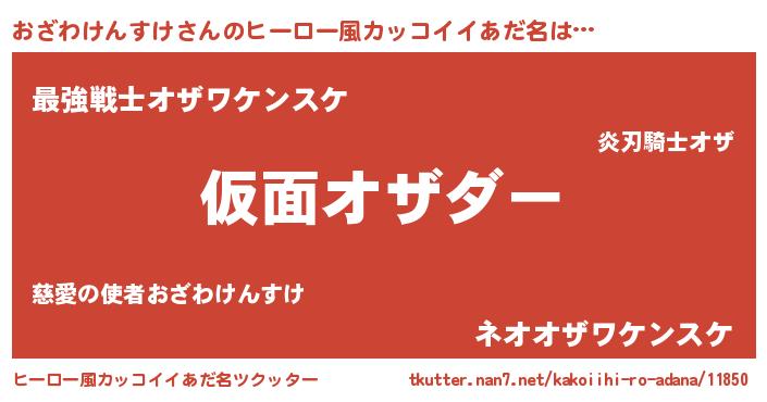 | 男性向けラノベタイトル風あだ名 | 『おざわけんすけ~年齢イコール彼女いない歴の魔法使い~』 |