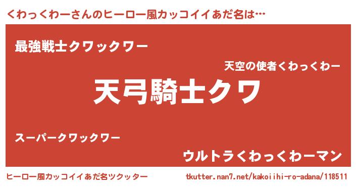 | 男性向けラノベタイトル風あだ名 | 『くわっくわーの嫁は女の子じゃないと思った?』 |