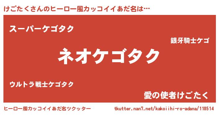 | 意味不明あだ名 | 『永久保存けごたく』『ペロリンけごたく』 |