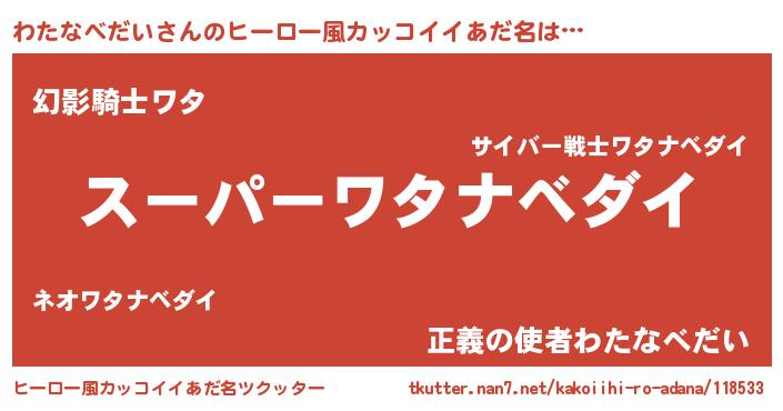 | 女子向けラノベタイトル風あだ名 | 『(仮)わたなべだいのやんごとなき事情』 |