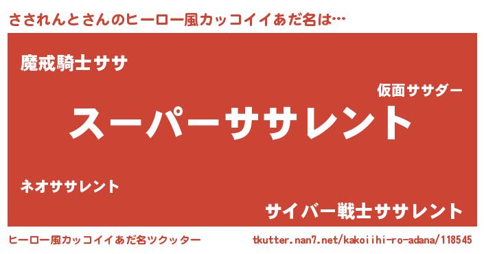 | 男性向けラノベタイトル風あだ名 | 『さされんとの憂鬱』『緋弾のササレント』 |