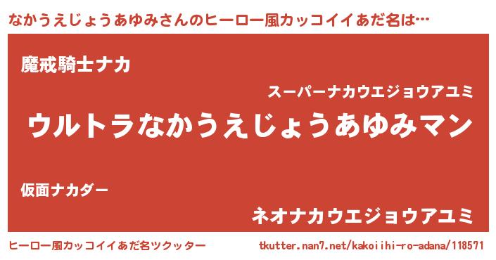 | 男性向けラノベタイトル風あだ名 | 『やはりなかうえじょうあゆみの青春ラブコメはまちがっている 』 |