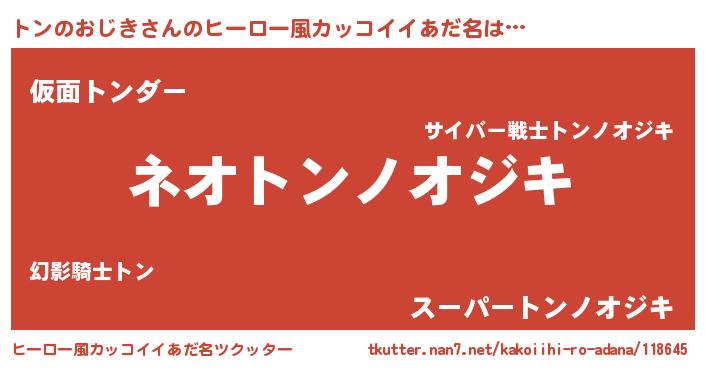 | 男性向けラノベタイトル風あだ名 | 『トンのおじきという概念が存在しない退屈な世界 』 |