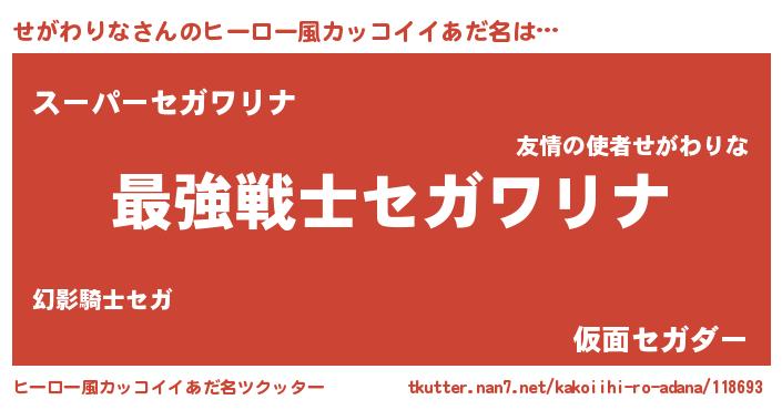 | 男性向けラノベタイトル風あだ名 | 『Re:せがわりなから始める異世界生活』 |