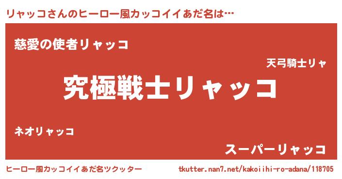 | 男性向けラノベタイトル風あだ名 | 『Re:リャッコから始める異世界生活』 |