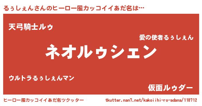 | ヘコむあだ名 | 『るぅしぇん(爆)』『るぅっ子』 |