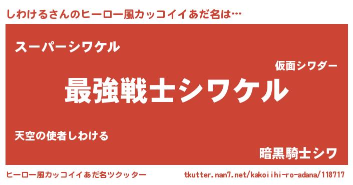 | 男性向けラノベタイトル風あだ名 | 『Re:しわけるから始める異世界生活』 |