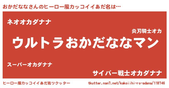 | 男性向けラノベタイトル風あだ名 | 『うちの娘の為ならば、俺はもしかしたらおかだななも倒せるかもしれない。』 |