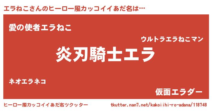 | 男性向けラノベタイトル風あだ名 | 『エラねこの嫁は女の子じゃないと思った?』 |