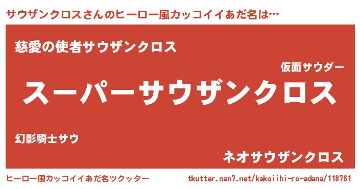 | 男性向けラノベタイトル風あだ名 | 『サウザンクロスの憂鬱』 |