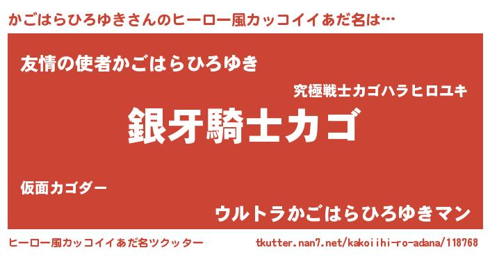 | 男性向けラノベタイトル風あだ名 | 『転生したらかごはらひろゆきだった件』 |