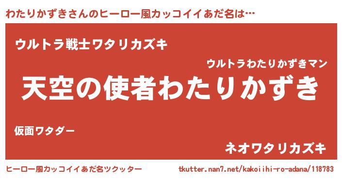 | 男性向けラノベタイトル風あだ名 | 『ノーゲーム・ノーワタリカズキ』 |