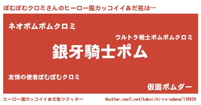 | 意味不明あだ名 | 『とにかく怪しいぽむぽむクロミ』 |