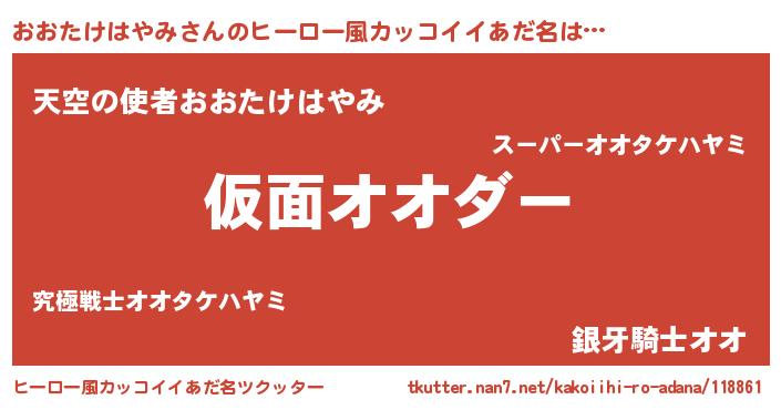 | 意味不明あだ名 | 『住所不定無職おおたけはやみ(59歳)』 |