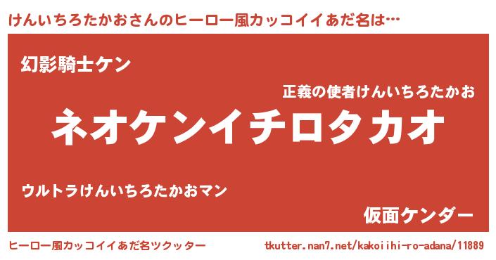 | ヘコむあだ名 | 『けんいちろたかお(小並感)』『けんを』 |