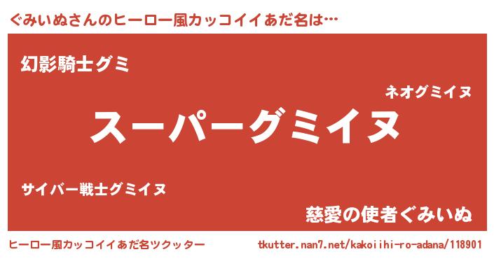 | 伝説のあだ名 | 『伝説の竜騎士ぐみいぬ』 |