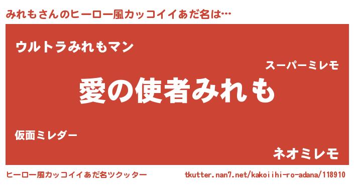 | 女子向けラノベタイトル風あだ名 | 『みれも恋絵巻』『みれもの雑貨屋さん』 |