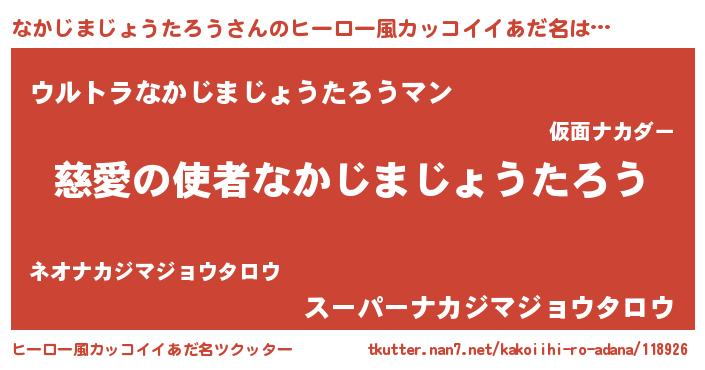| 男性向けラノベタイトル風あだ名 | 『ノーゲーム・ノーナカジマジョウタロウ』 |
