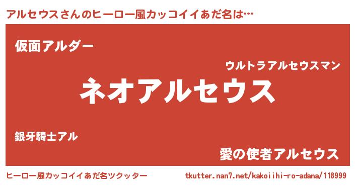 | 胡散臭い通販商品みたいなあだ名 | 『絶対に幸福をもたらす健康食品…その名も「アルセウス」』 |
