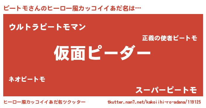 | 女子向けラノベタイトル風あだ名 | 『乙女ゲームの破滅フラグしかない悪役ピートモに転生してしまった…』 |