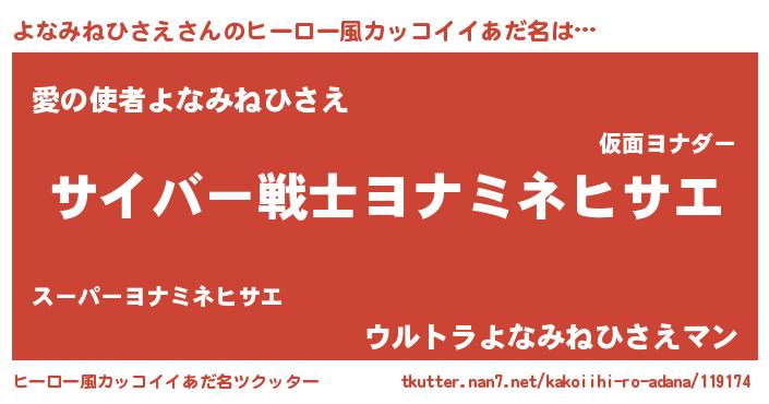 | 男性向けラノベタイトル風あだ名 | 『Re:よなみねひさえから始める異世界生活』 |