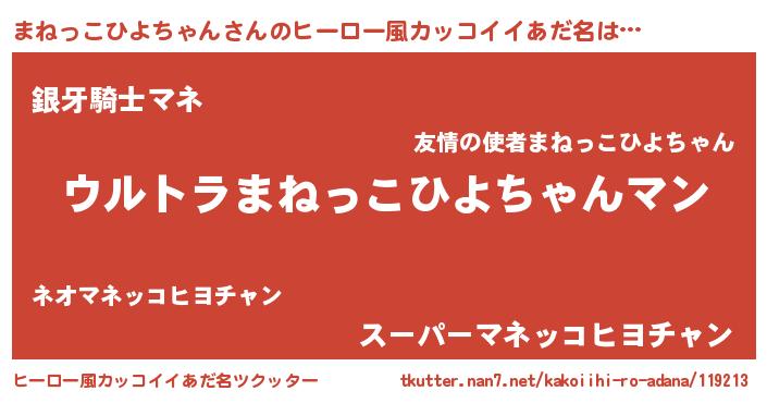 | ファンタジー風あだ名 | 『エターナルマネッコヒヨチャンー』 |