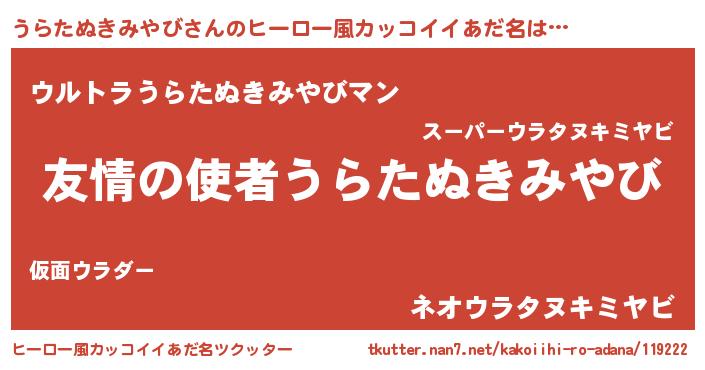| 胡散臭い通販商品みたいなあだ名 | 『100人中100人が認めたマグネット磁石…その名も「うらたぬきみやび」』 |