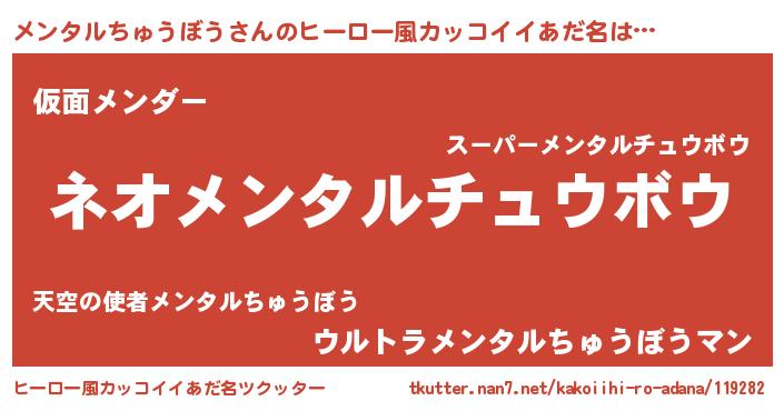 | 意味不明あだ名 | 『永久保存メンタルちゅうぼう』 |