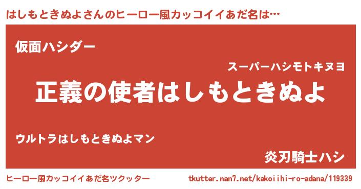 | 胡散臭い通販商品みたいなあだ名 | 『100人中100人が認めたイリジウム磁石…その名も「はしもときぬよ」』 |