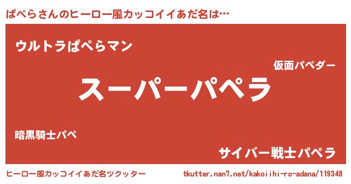 | 胡散臭い通販商品みたいなあだ名 | 『モテモテ間違いなし霊験あらたかなお札…その名も「ぱぺら」』 |
