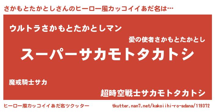 | 男性向けラノベタイトル風あだ名 | 『サカモトタカトシアートオンライン』 |