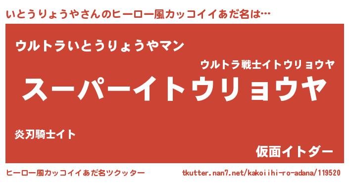 | 男性向けラノベタイトル風あだ名 | 『イトウリョウヤアートオンライン』 |