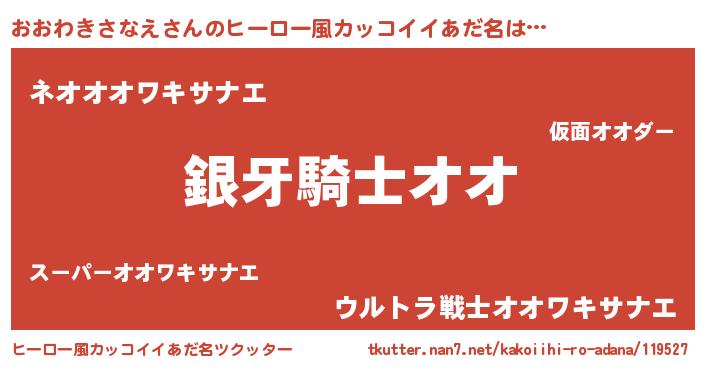 | ポケモン風あだ名 | 『ヒオオワキサナエ』『ゼニオオ』 |