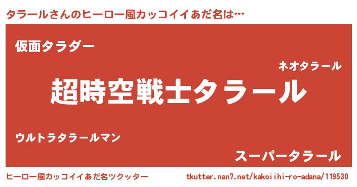 | 女子向けラノベタイトル風あだ名 | 『タラールなんてお断りですっ。』 |