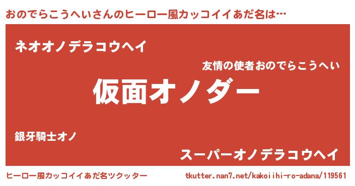 | ヘコむあだ名 | 『おのでらこうへい(笑)』『おのもー』 |