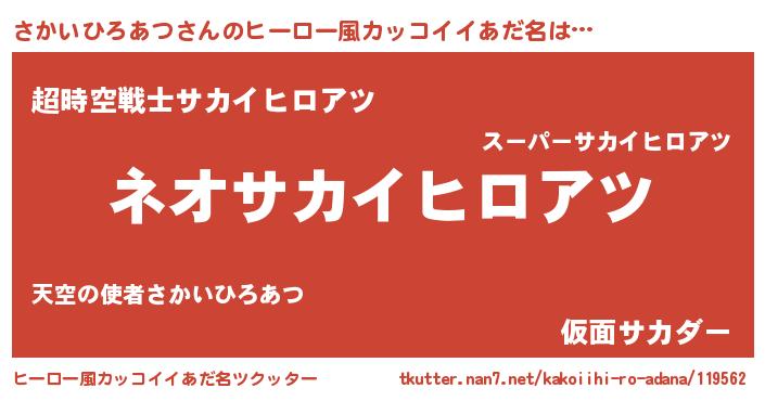 | 男性向けラノベタイトル風あだ名 | 『さかいひろあつという概念が存在しない退屈な世界 』 |
